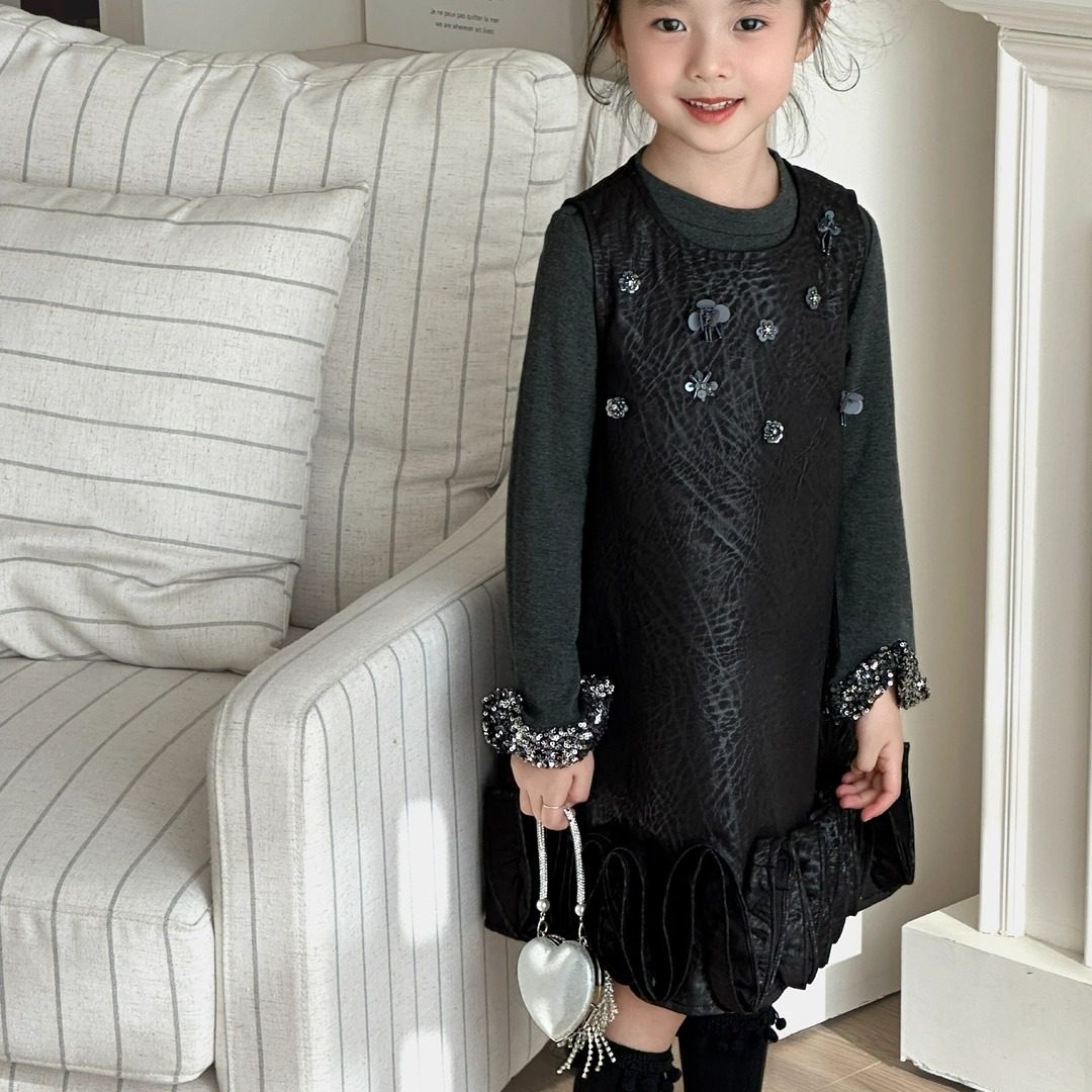 ⭐小红书推荐⭐亮片长袖 裙子25秋冬新品 kw家女童黑色皮裙亮片钉珠无袖 T恤两件套,所属连衣裙分类,由淘宝网挑选推荐!小红书抖音网红同款!哪里有卖亮片长袖 裙子25秋冬新品 kw家女童黑色皮裙亮片钉珠无袖 T恤两件套和多少钱质量怎么样✅。