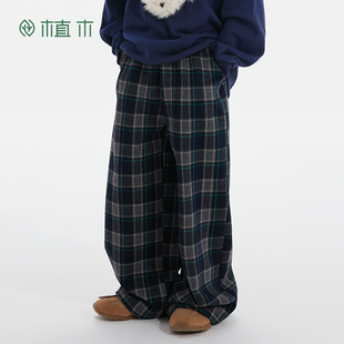 新款 植木 子2026春季 男童裤 子童装 针织裤 儿童裤 中大童格子阔腿裤