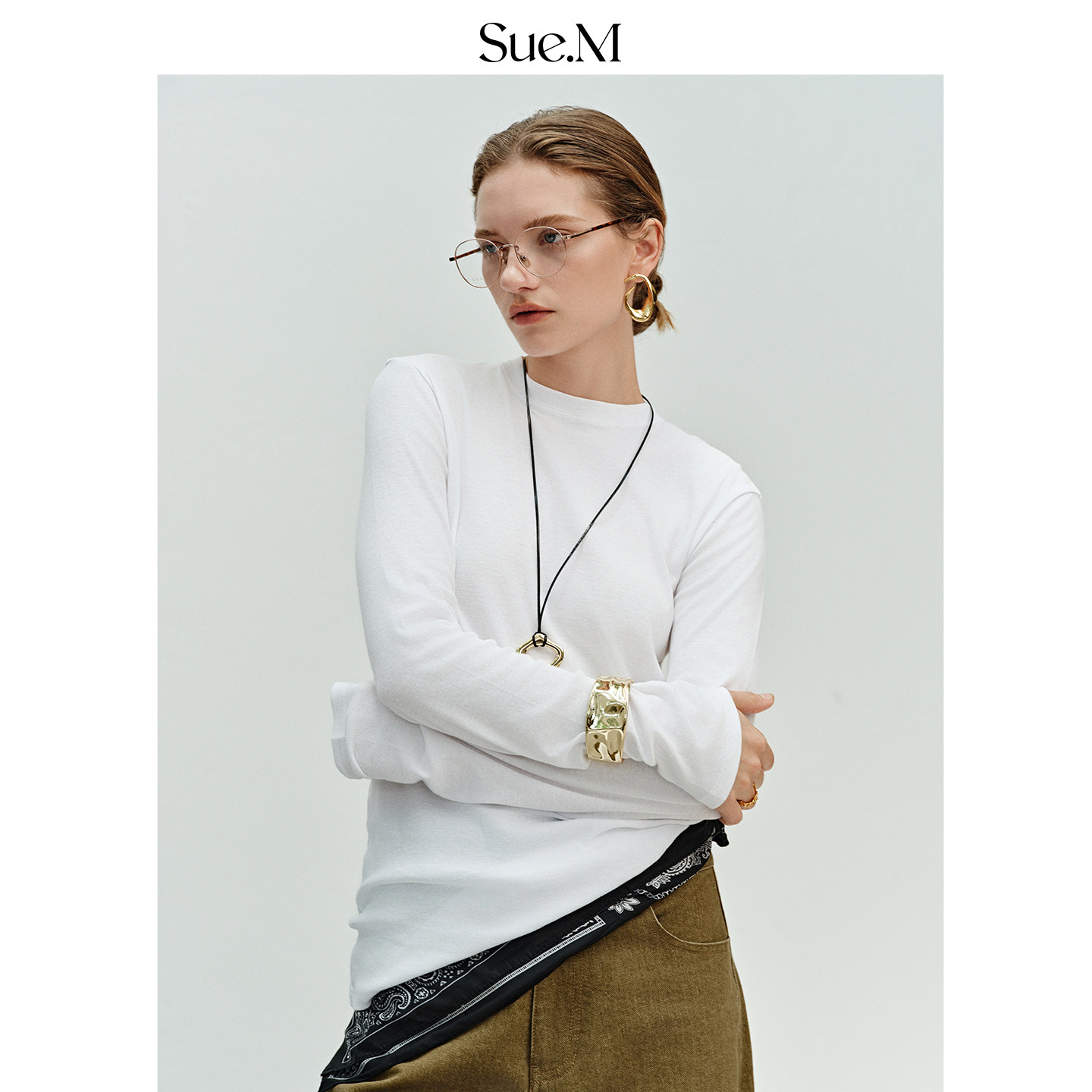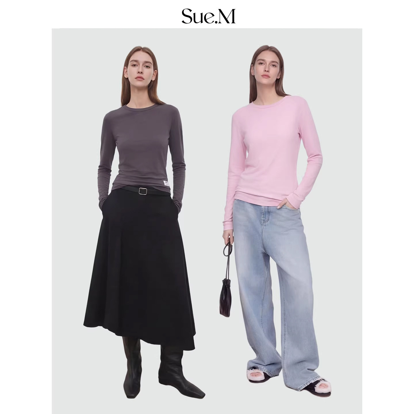 Sue.M T恤26春WAN能强捻螺纹打底 意大利进口Albini高支全棉纱长袖