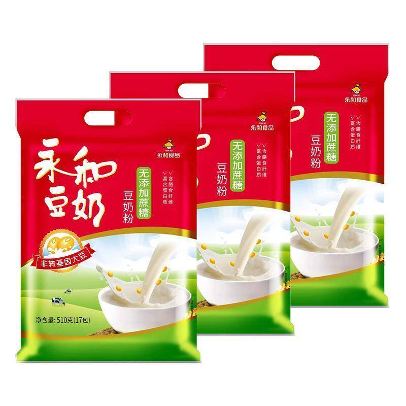 永和豆奶粉510g袋装 原味无蔗糖速溶早餐营养甜豆浆粉冲饮 经典