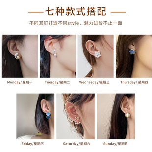 蝴蝶结珍珠耳环女生日礼物 耳饰s925纯银针一周七天不重样耳钉套装
