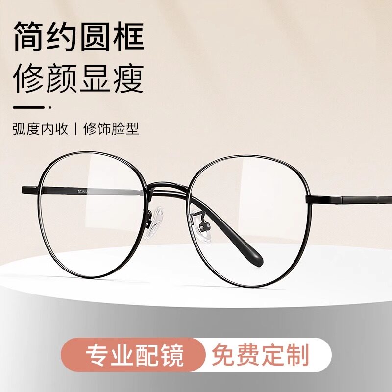 可配度数散光细框超轻钛架防蓝光复古圆框眼睛架女 近视眼镜框男款
