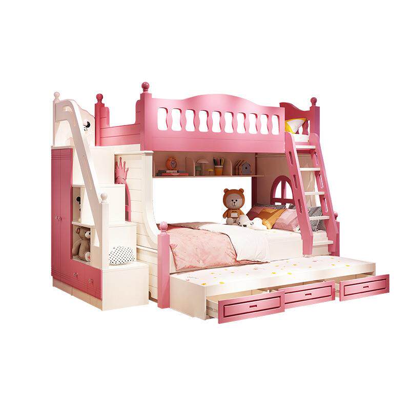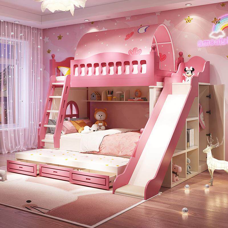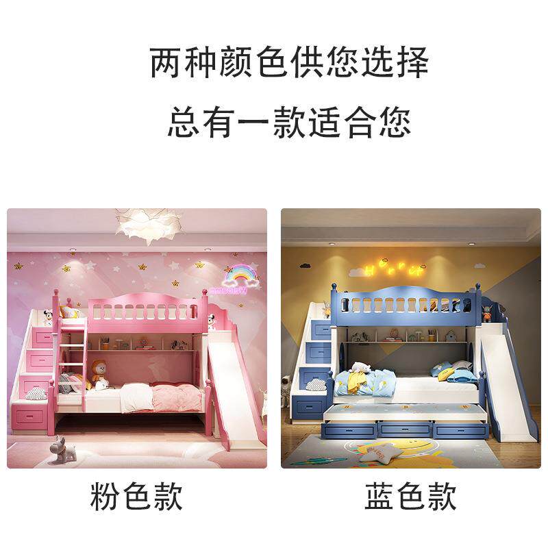 上下铺双层床粉色儿童床两层上下床公主床滑滑梯床木床女孩高低床