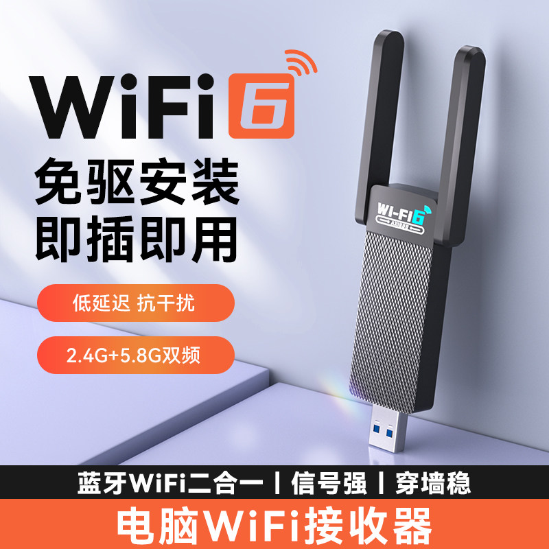 USB无线网卡wifi6免驱动双频千兆双频台式 电脑发射5G高速笔记本网络wifi大功率接收信号器 机usb接收器台式