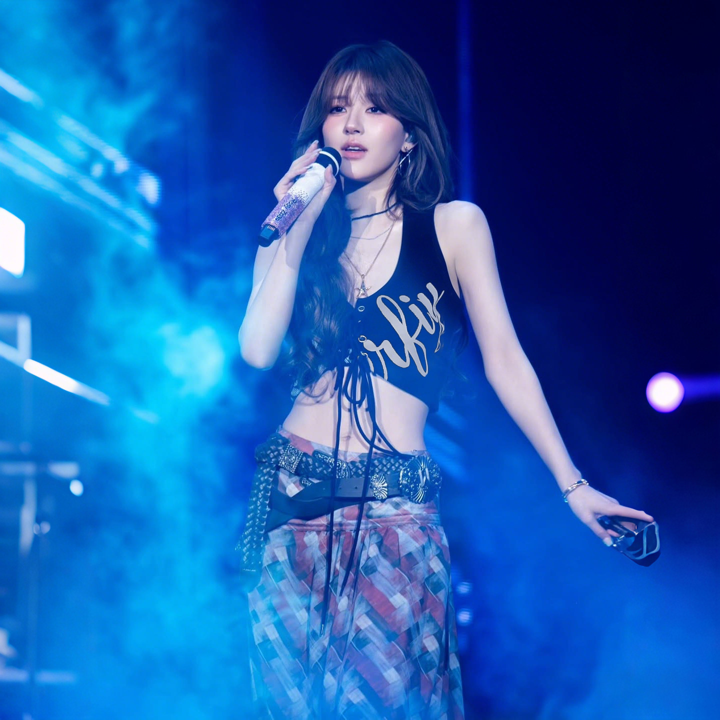 赵露思Rosy偶像idol风字母印花挂脖吊带格纹半身裙两件套 SylCue由