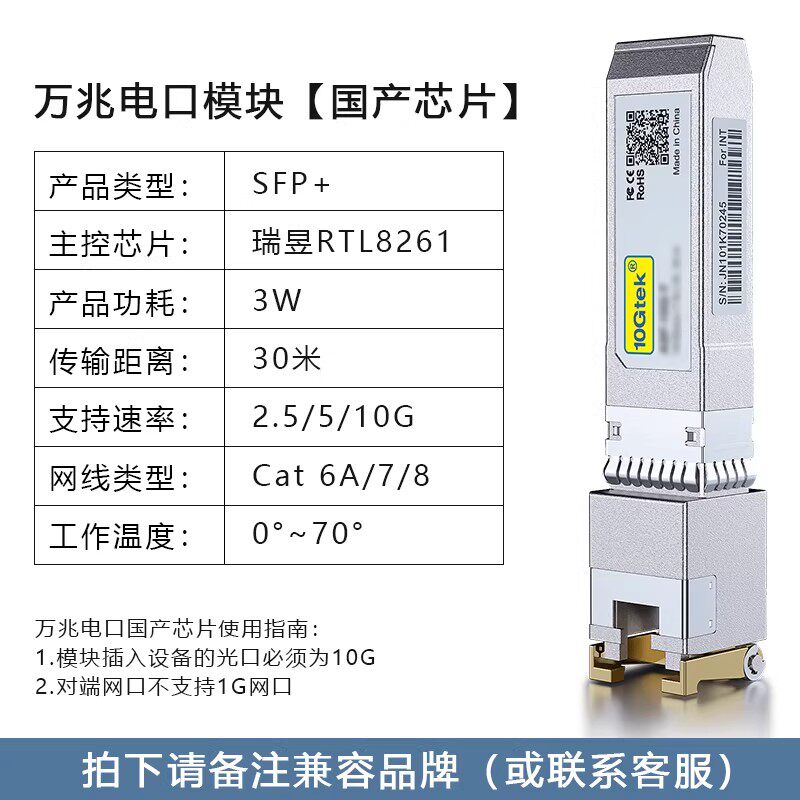 为您提供商品万兆光转电模块10G 转RJ45网口兼容华为锐捷华三思科英特尔 SFP的详细介绍,