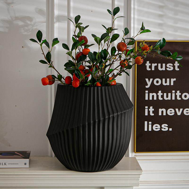 轻奢高级感落地镁泥花盆黑金刚橡皮树天堂鸟百合竹大号绿植盆