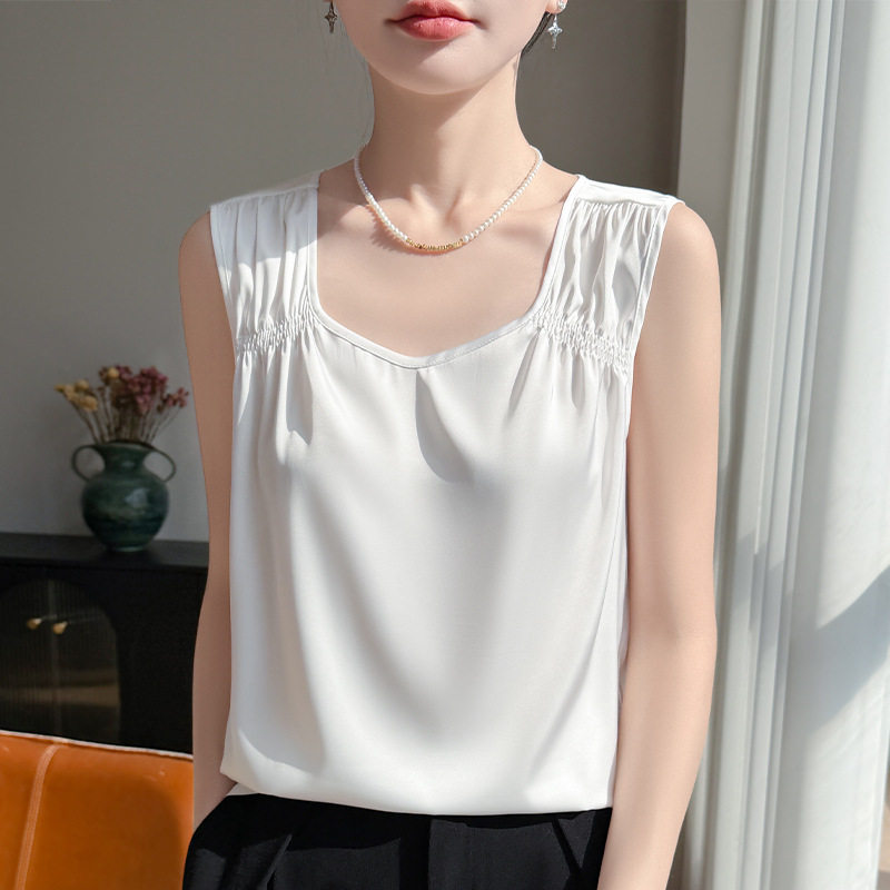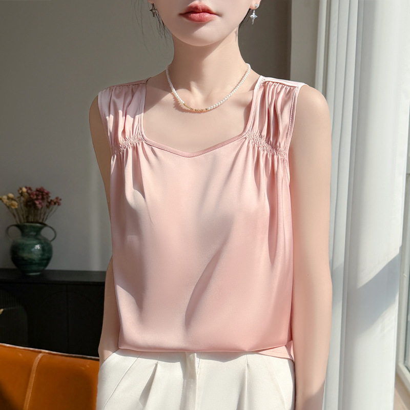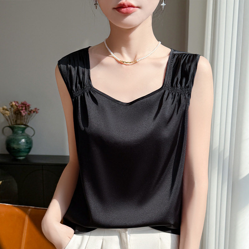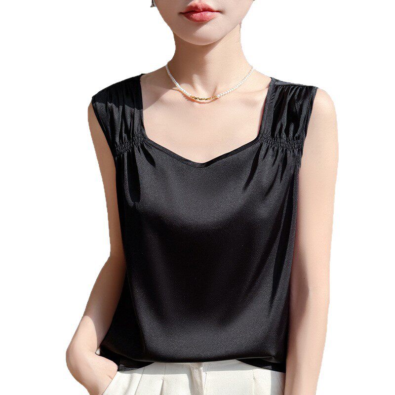 厂家2026春夏季 吊带背心女 轻奢丝滑缎面仿真丝钻石领领无袖
