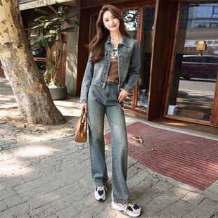 洋气减龄短款 高级感牛仔套装 女秋季 时尚 两件套 外套阔腿裤由