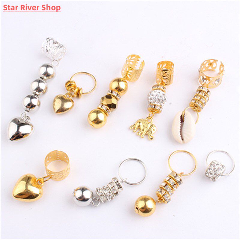 5pcs Beads Charms Dread Rings Tubes Hair African Metal Cuffs由