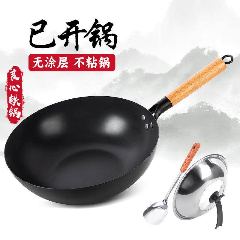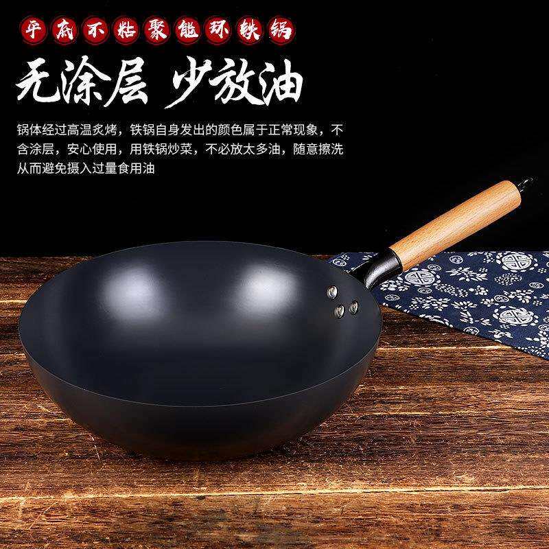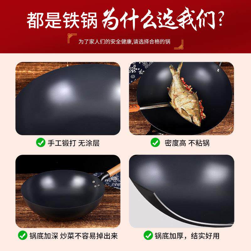 为您提供商品家用炒菜锅无涂层不粘锅深层氮化炒锅手工锻打平底铁锅已开锅 老式的详细介绍,