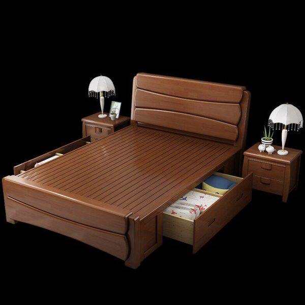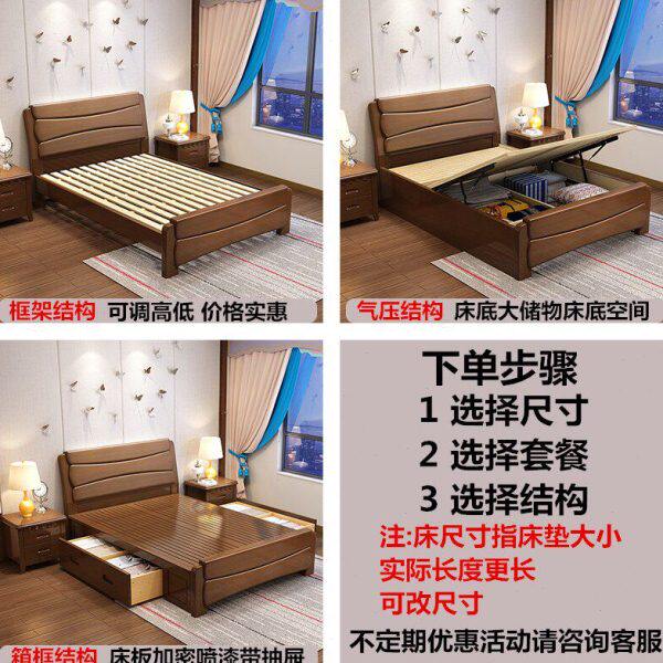 现代简约实木床1.8米主卧双人床1.5M单人经济型高箱储物大床