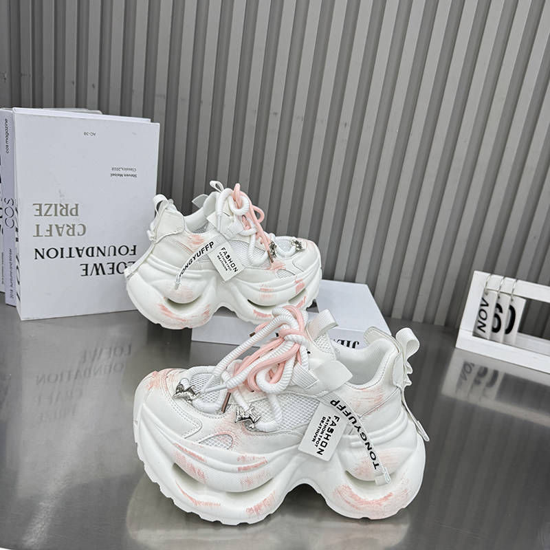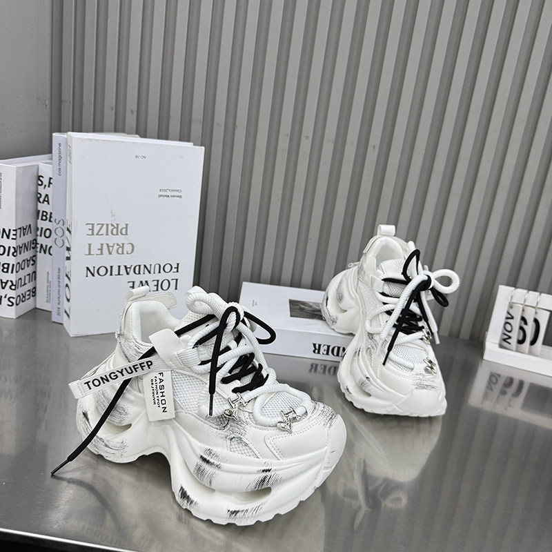 百搭透气舒适运动休闲鞋 26新款 涂鸦风老爹鞋 女厚底松糕鞋 1212