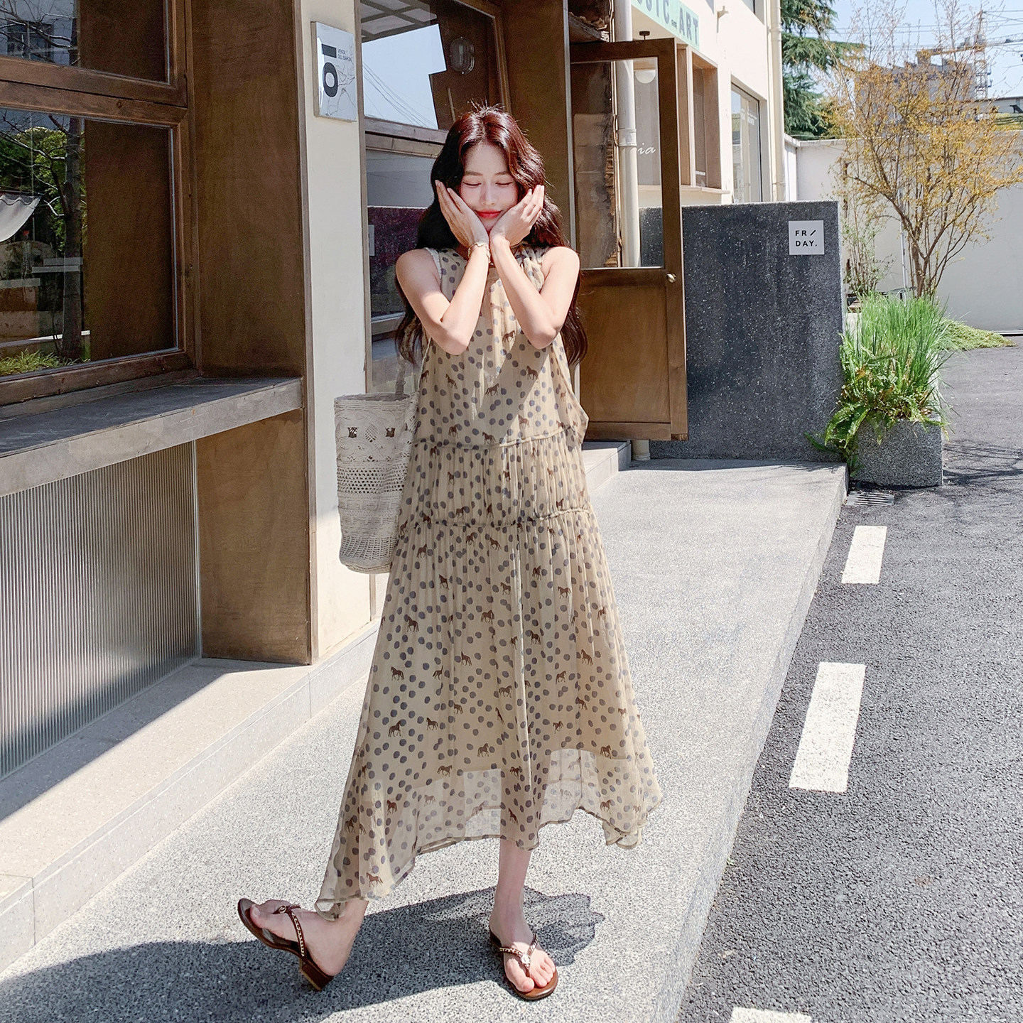 连衣裙女夏A字长裙显瘦气质258 278 度假风小马波点无袖 4.3法式由