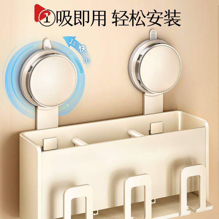 吸盘牙刷置物架免打孔漱口杯刷牙杯牙膏架子卫生间电动家庭壁挂式