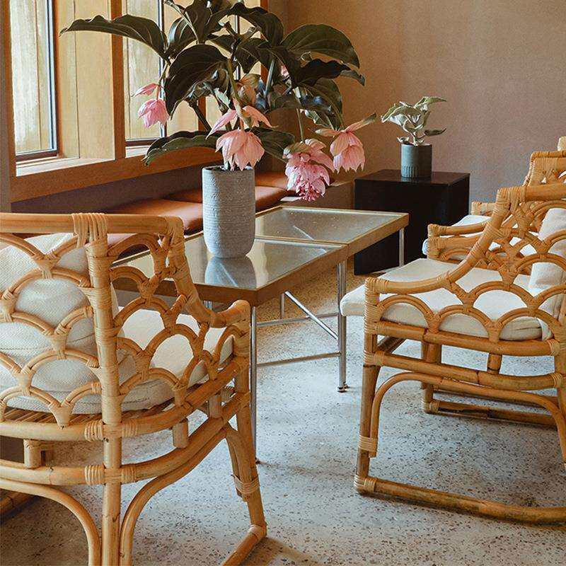 甜品店餐厅岩板餐桌椅组合现代简约商用餐饮奶茶店咖啡厅藤编桌椅