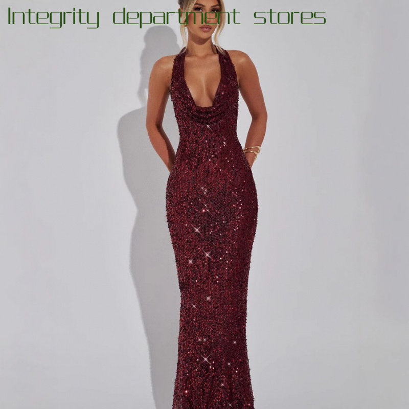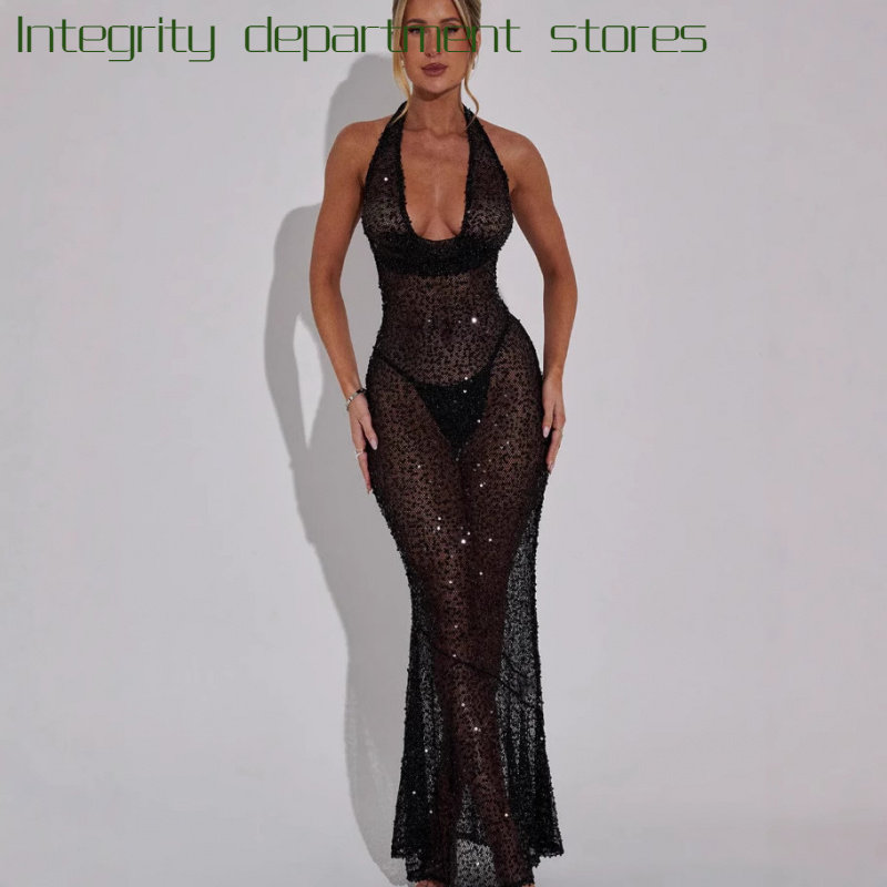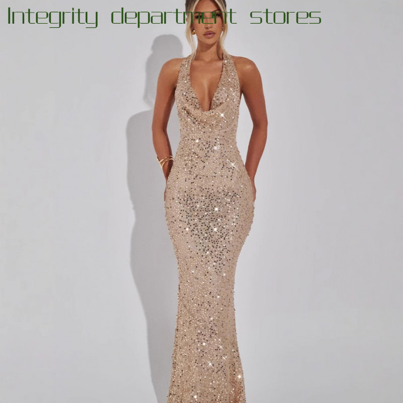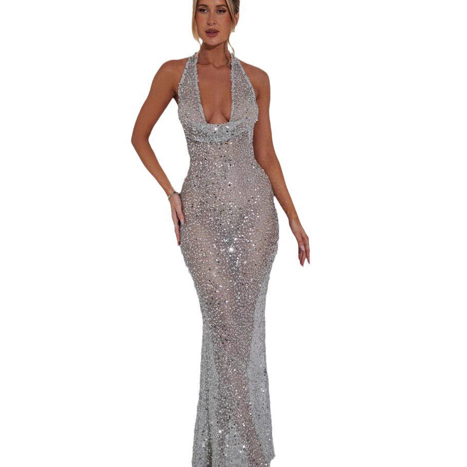fit slim sexy hugging潮流亮片深挂脖 out hip hollowed Bubble