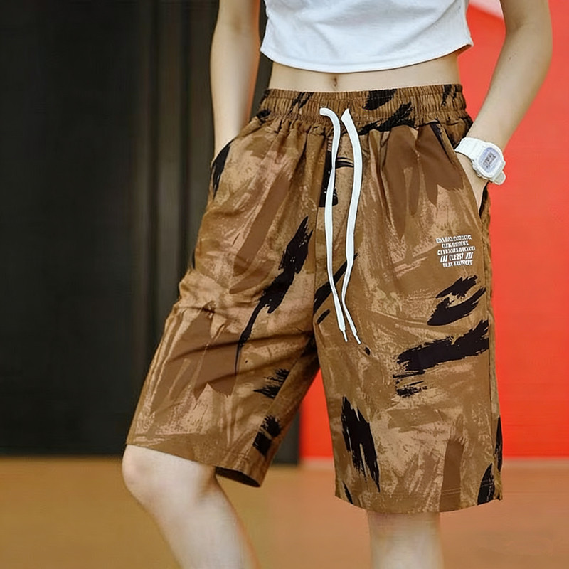 休闲裤 五分裤 2026薄款 迷彩直筒中裤 潮流运动裤 冰丝短裤 女夏季 爆款