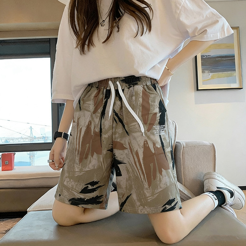 休闲裤 五分裤 2026薄款 迷彩直筒中裤 潮流运动裤 冰丝短裤 女夏季 爆款由