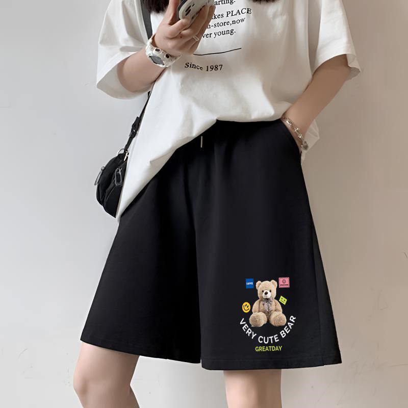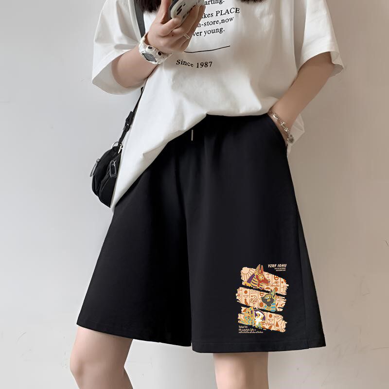 新款 女 五分裤 夏季 爆款 显瘦阔腿休闲裤 潮流直筒中裤 子女款 运动短裤由