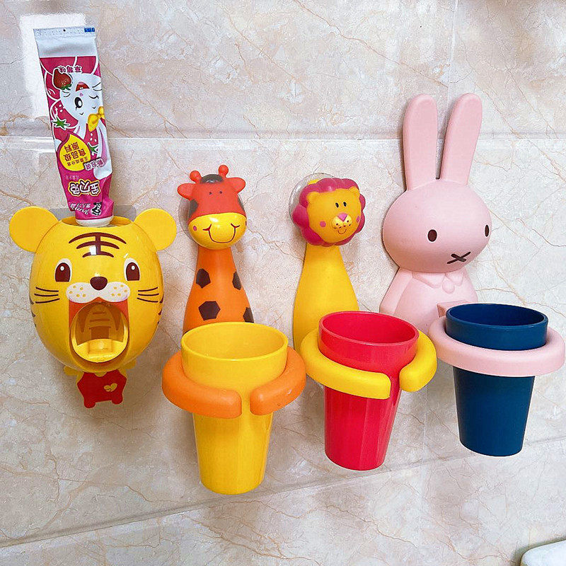 儿童小宝宝牙刷牙杯架牙缸卡通可爱挂墙挂壁式 洗漱口杯置物架套装
