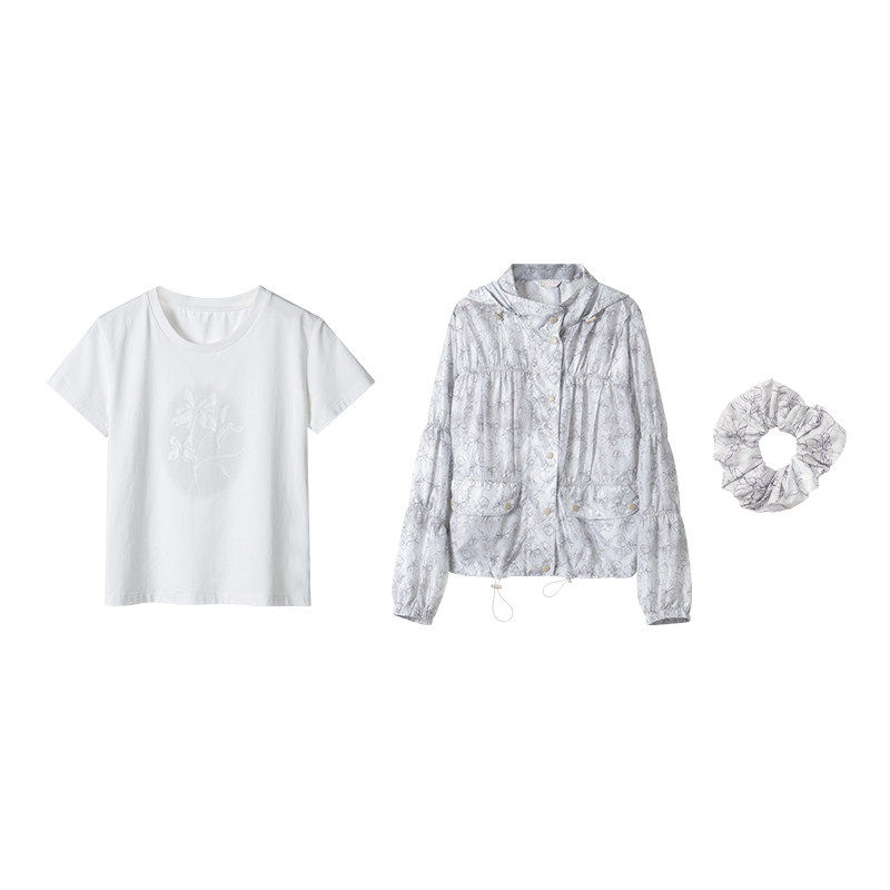 休闲外套 晕染防嗮衣套组 定制面料 轻薄透气 发圈 基础百搭T恤由