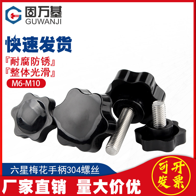 为您提供商品304不锈钢梅花手柄螺丝星形带把手胶木六星旋钮头手拧螺栓M6M8M10的详细介绍,