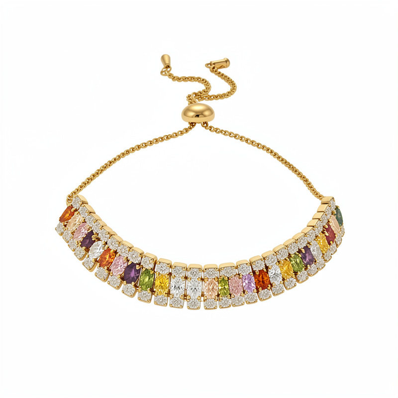 为您提供商品18k真金电镀轻奢风多排锆石几何抽拉式 简约精致手饰 手链时尚的详细介绍,