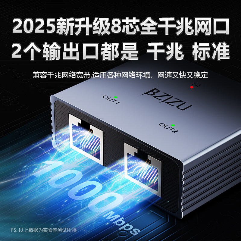 千兆网线分线器升级铝合金1000Mbps快速传输两台设备同时上网对接头转接口延长一拖二三四以太网交换机 BZIZU由