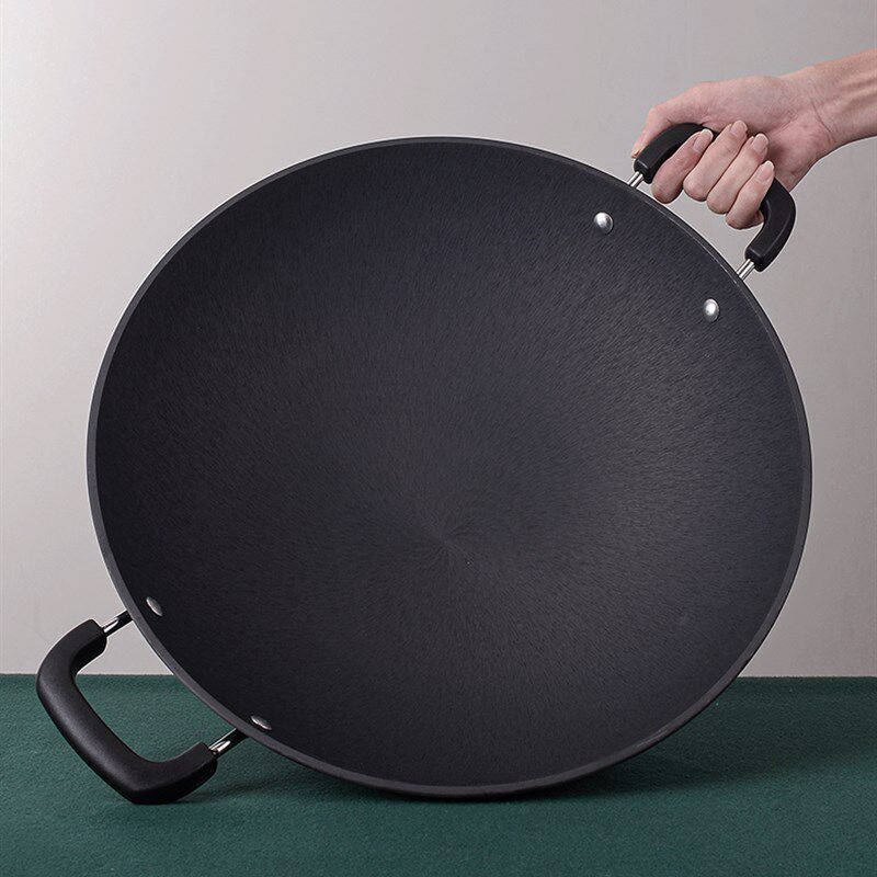 炒菜燃气灶电磁炉平底锅免开锅 爱仕达大铁锅无涂层炒锅家用老式