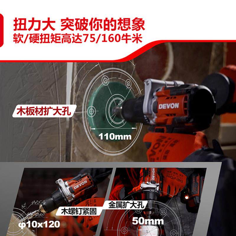 大孔防扭手 大有20V锂电无刷冲击钻5202超大扭矩冲击电钻160牛开由