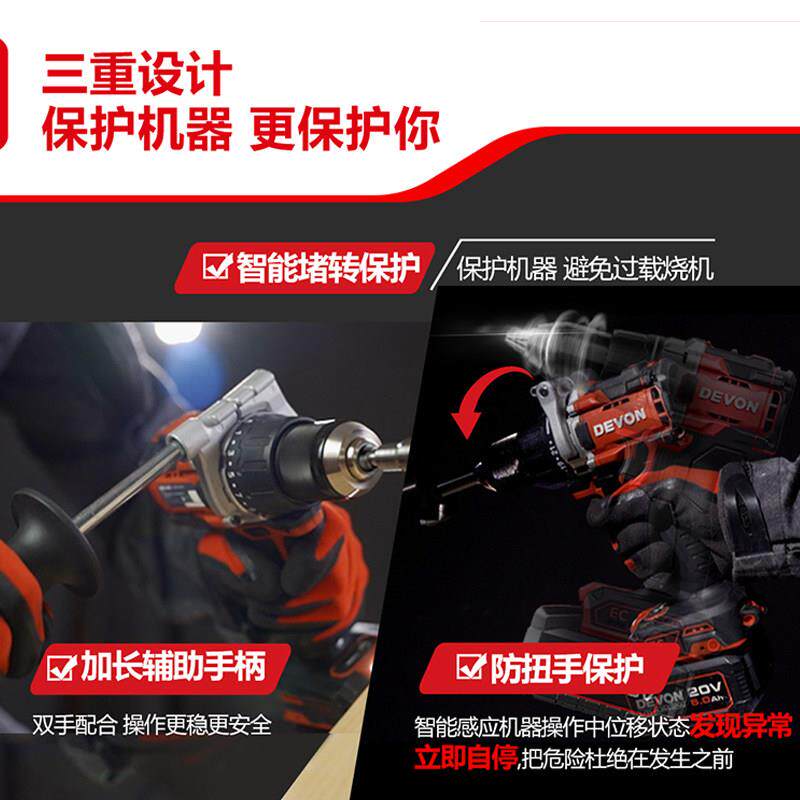 大孔防扭手 大有20V锂电无刷冲击钻5202超大扭矩冲击电钻160牛开
