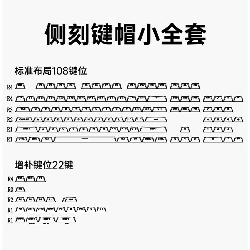 赤暴白色侧刻透光h键帽OEM高度PBT磨砂适61 75F98键盘配列V87由