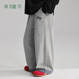 名创优品直筒长裤 2026新款 宽松阔腿休闲灰色运动卫裤 子男春夏季