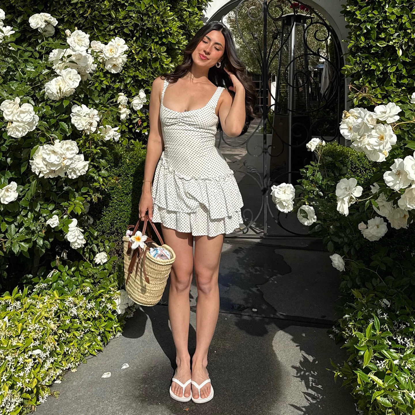 法式 包臀长裙子 荷叶边波点吊带连衣裙女春夏海边度假绝美气质修身