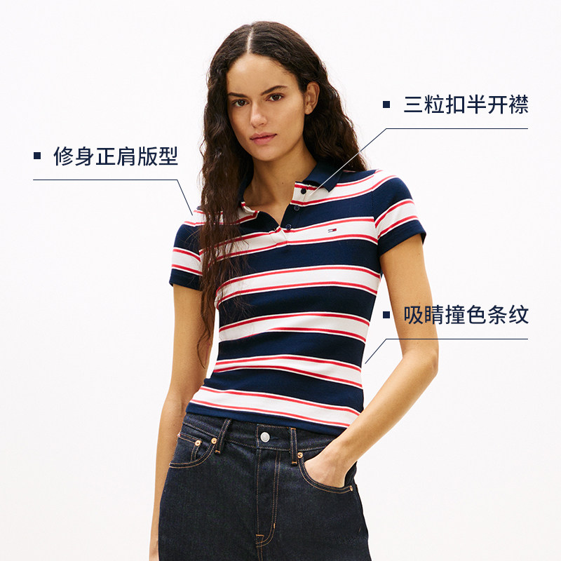 为您提供商品Tommy26春夏新款 英同款 张元 T恤POLO 罗纹肌理条纹修身 短袖 女装的详细介绍,