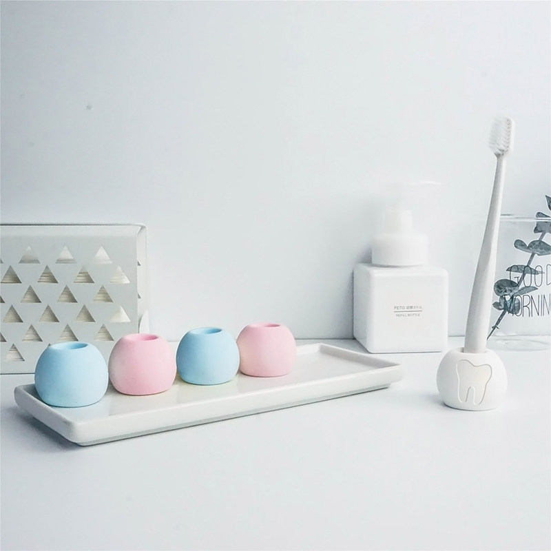 北欧简约牙刷架情侣牙刷底座架托盘 创意彩色瓷器牙刷座牙具座时尚