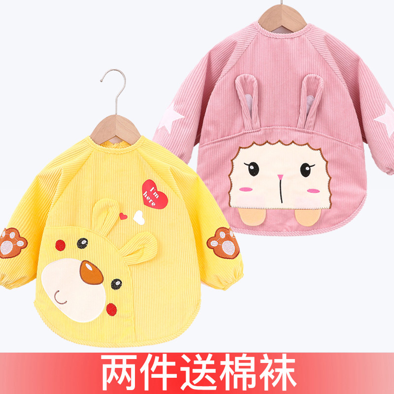 秋冬防水婴儿吃饭防脏围兜男童水晶绒反穿衣宝宝围裙 儿童罩衣长袖