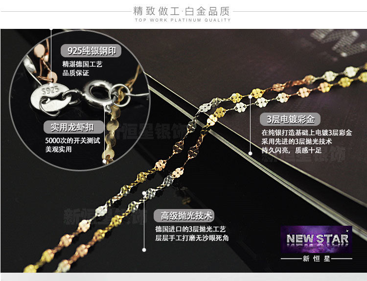 为您提供商品彩金镀不掉色925纯银单裸链子无吊坠蛇锁骨链 玫瑰金项链女18k正品的详细介绍,