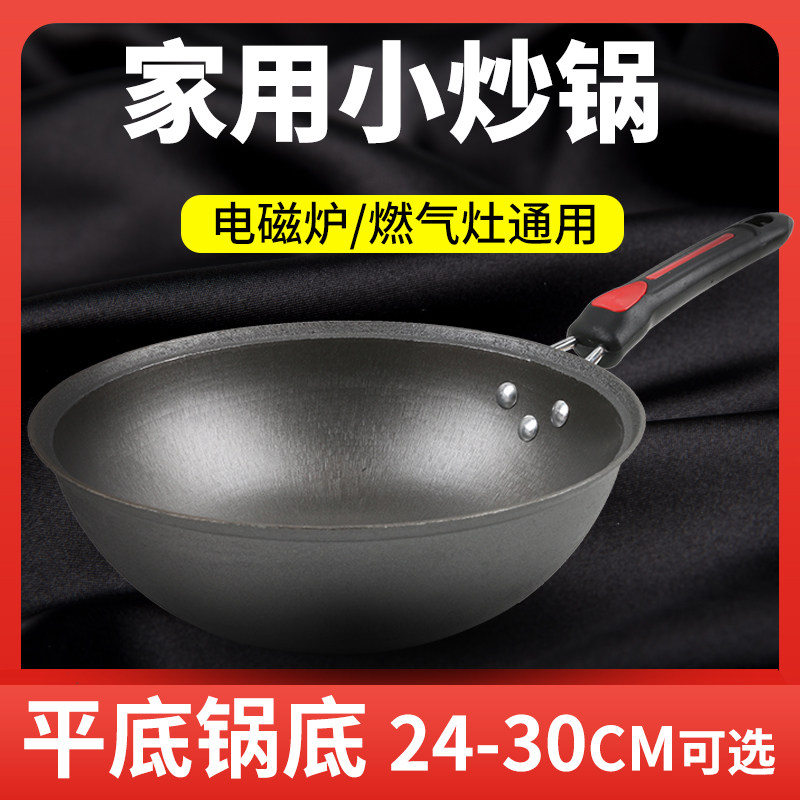 无涂层 小炒锅铁锅炒菜锅电磁炉燃气灶适用生铁平底铸铁锅家用老式