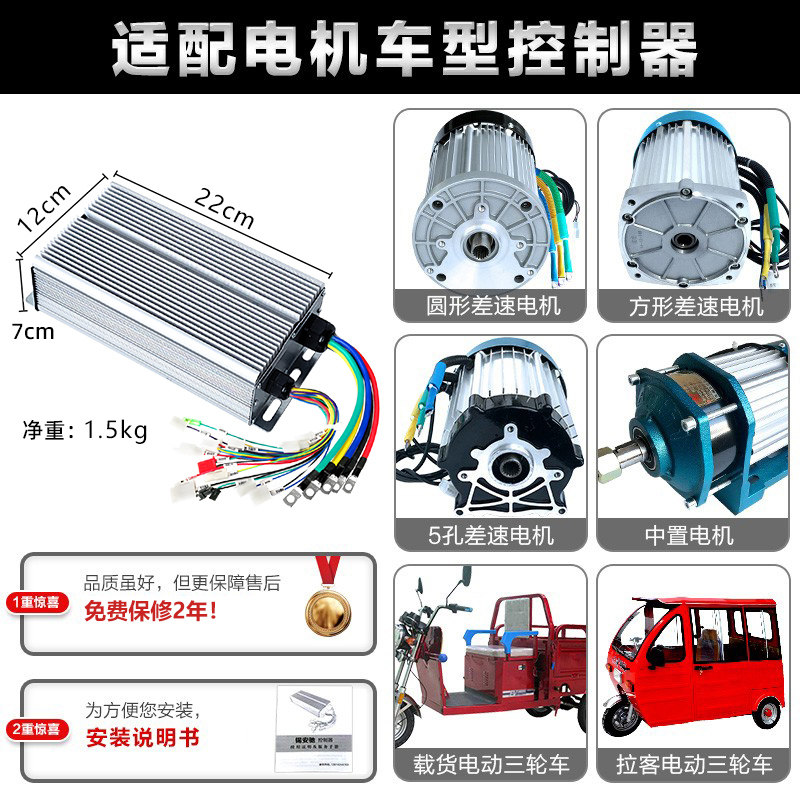 三轮车控制器控速器电瓶智能双模专用电动车电机48v60v1000w1500w