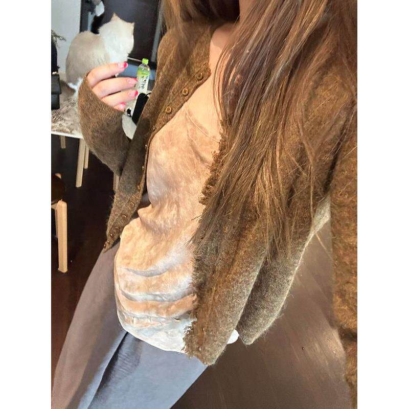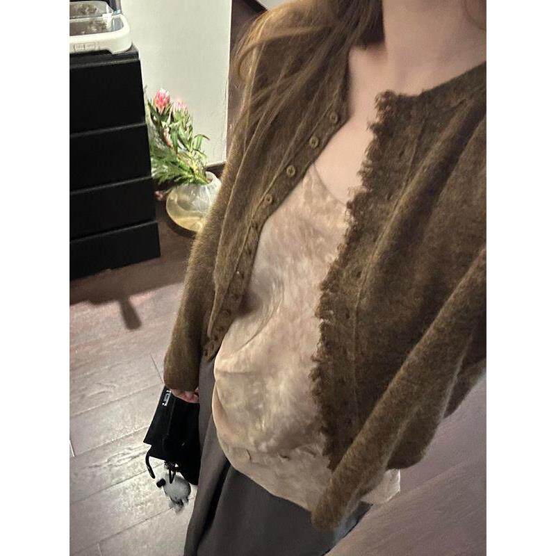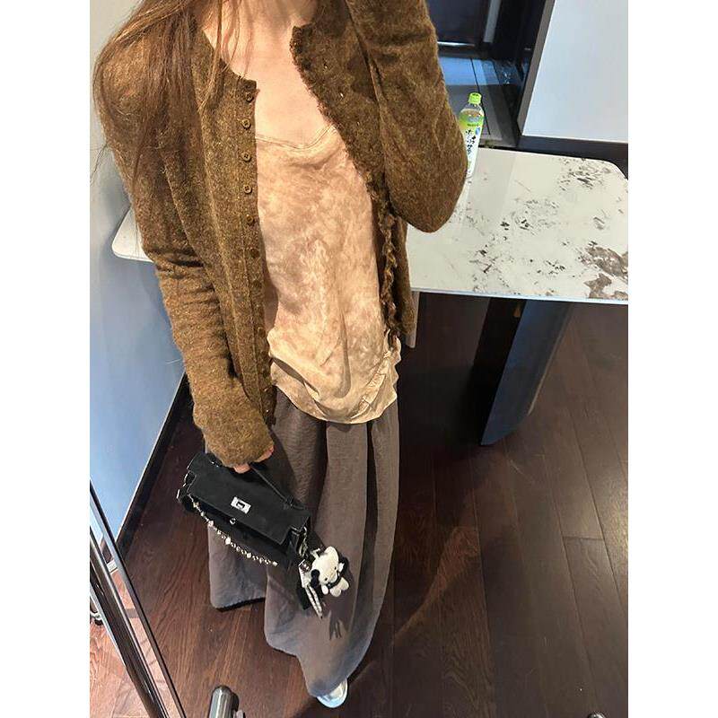牛X货 穿搭独特设计感漂亮覆古印花吊带棕色针织衫 套装 女 巨炸裂由