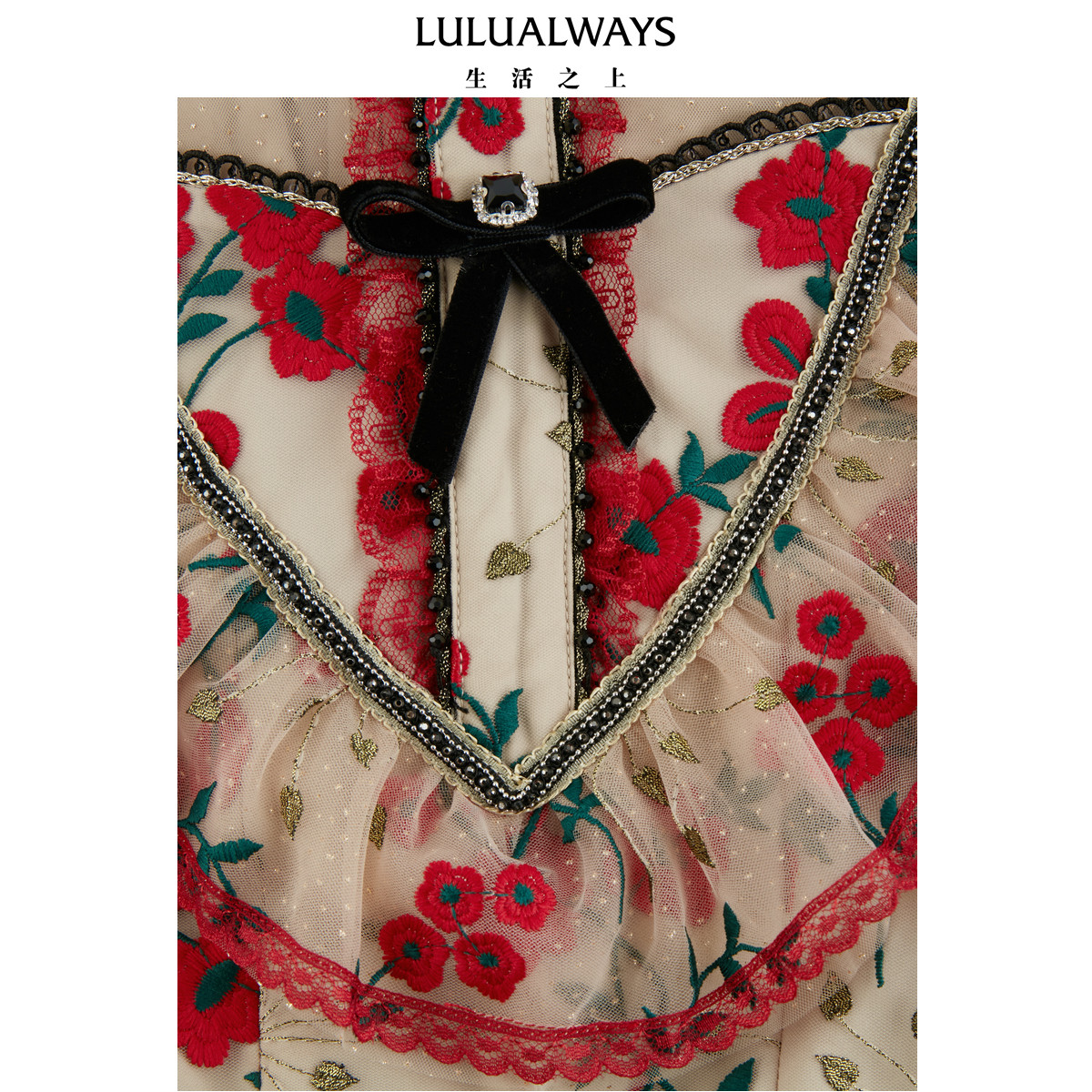 为您提供商品LULUALWAYS我爱露露26春季 法式 浪漫网纱花卉刺绣长款 连衣裙 新款的详细介绍,