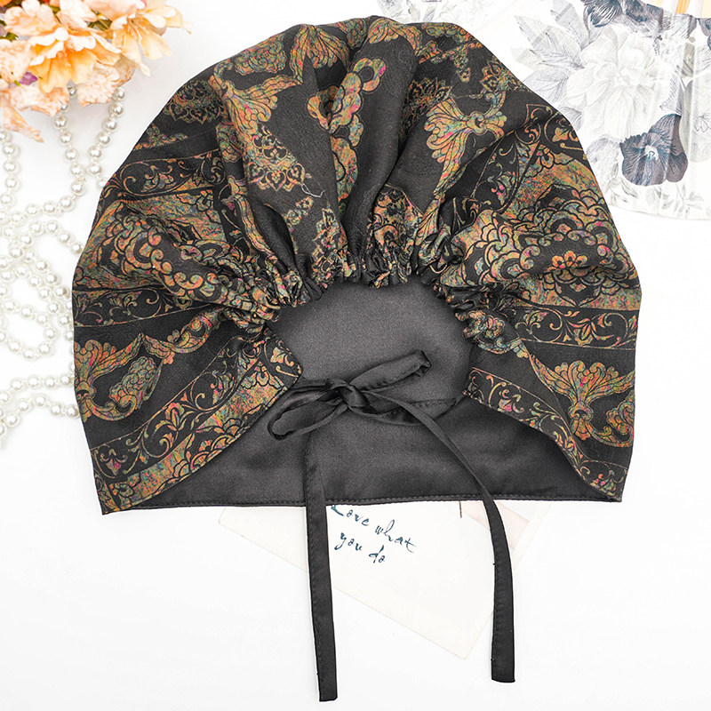 香云纱春秋夏季 桑蚕丝睡觉遮白发真丝空调帽防风护头帽 包头帽由