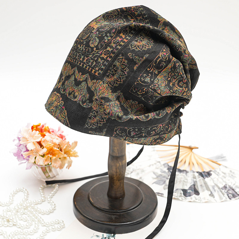 为您提供商品香云纱春秋夏季 桑蚕丝睡觉遮白发真丝空调帽防风护头帽 包头帽的详细介绍,