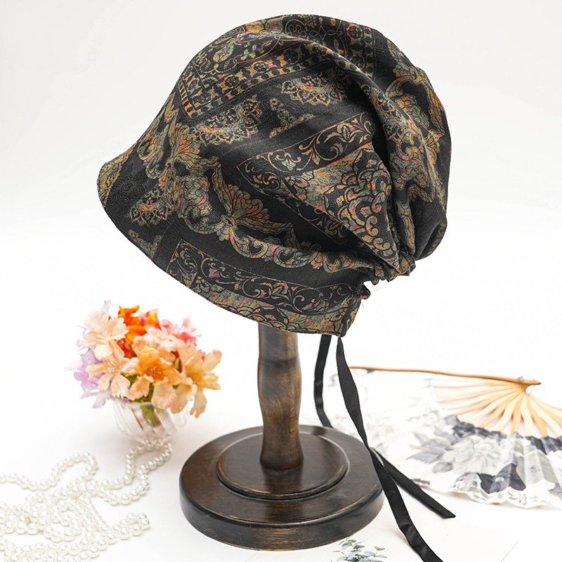香云纱春秋夏季 桑蚕丝睡觉遮白发真丝空调帽防风护头帽 包头帽