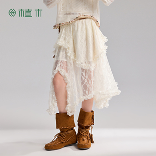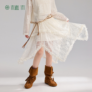 新款 植木 儿童短裙 2026年夏季 女童半身裙 波西米亚风 蕾丝纱裙