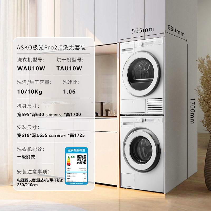 洗烘套装 重磅新品 ASKO极光Pro2.0 烘干机 无胶圈洗衣机热泵式由