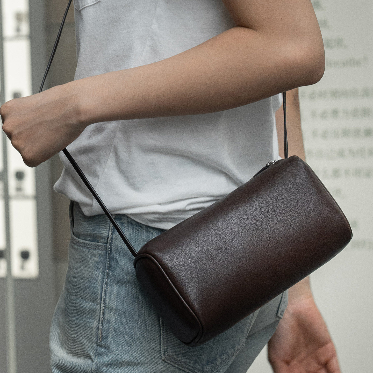 90s百搭圆筒包进口羊皮枕头包斜挎手提小包女通勤简约休闲 kikani