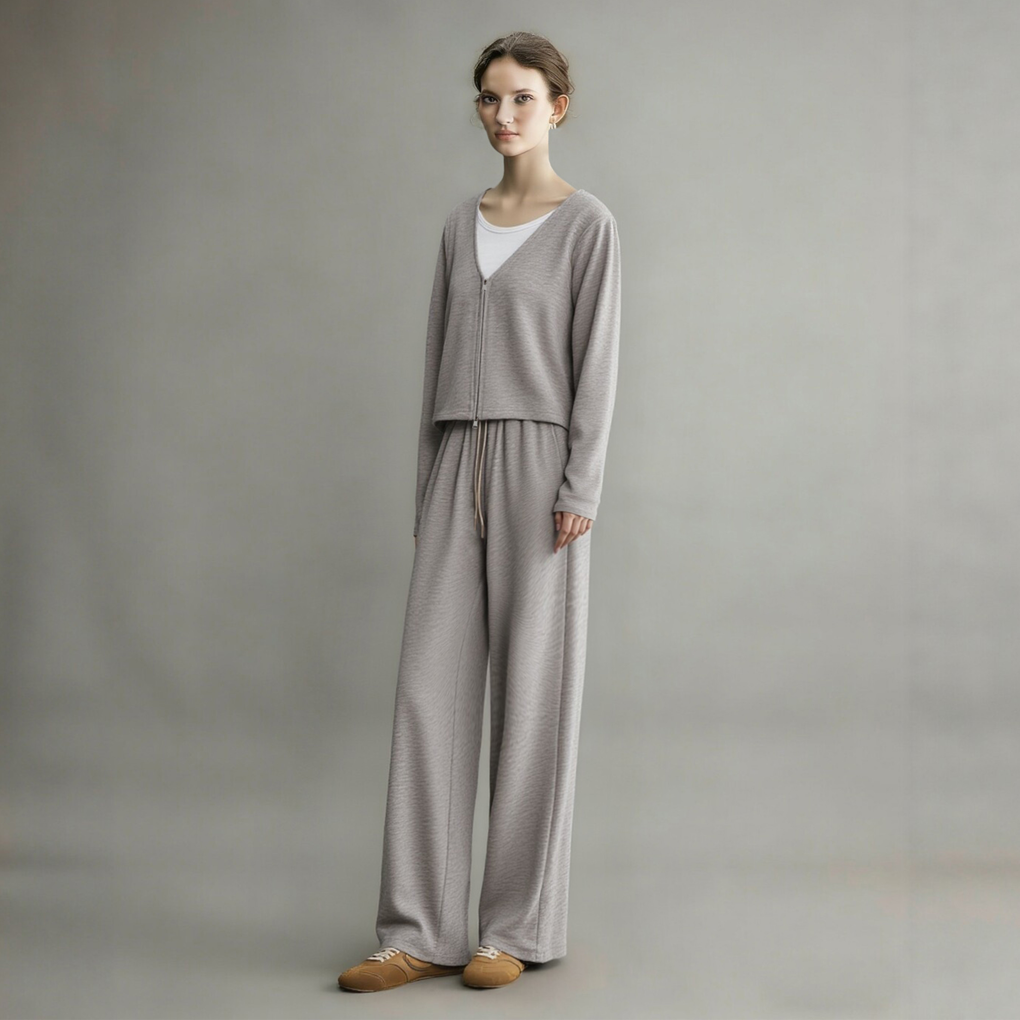 女运动休闲通勤慵懒时尚 2026春款 套装 两件套长袖 百搭阔腿裤
